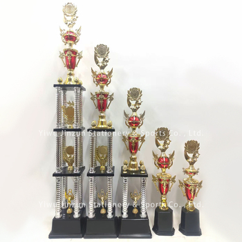 סיטונאי זהב צבעוני מותאם אישית זהב גביע ספורט אירוע ספורט יוקרה אלוף פרס 4 עמודות גביע
